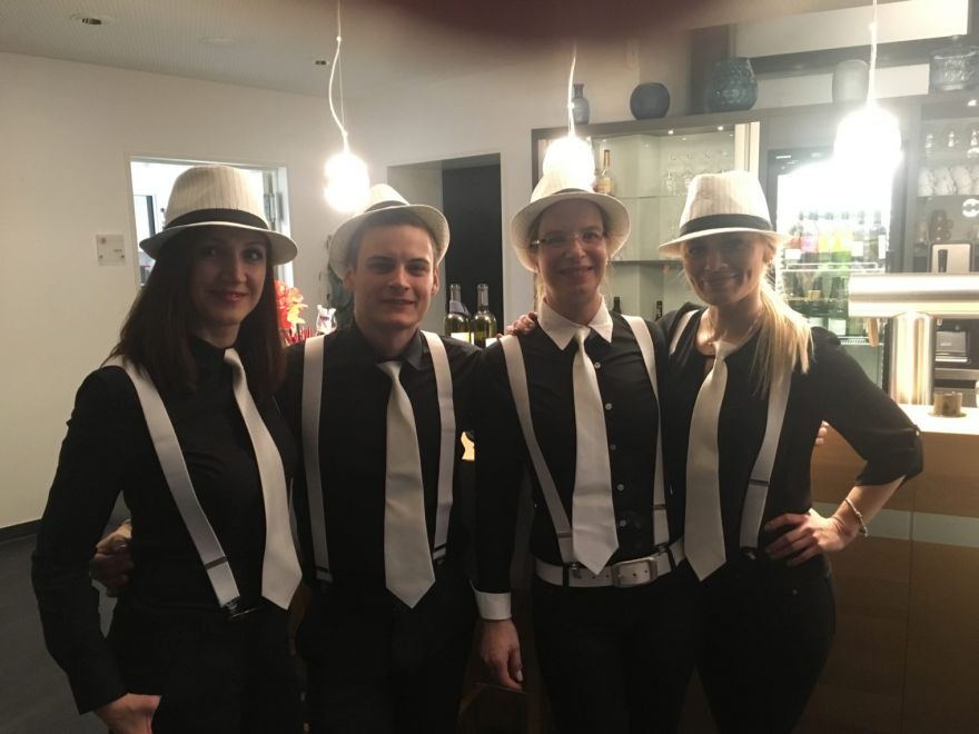 Gemeinsam und beschwingt rutschten sie mit einer rauschenden Silvester-Party in das neue Jahr. Der prickelnde Champagner zur Begrüßung, die Räumlichkeit festlich dekoriert und in schwarz-weißer Kleidung nicht nur unsere neuen Gastronomin Susen Kallensee mit ihren „helping hands“ passend gekleidet, all das versetzte die Gäste von Beginn an in den Rausch der 20er Jahre. Das Motto der Party war treffend gewählt. Hiernach genossen die Partygäste ein 5 Gänge Menu, das viel Lob und Zuspruch fand. Und dann füllten rasant tanzende Damen und Herren die Tanzfläche. Der DJ sorgte für die passende Musik.